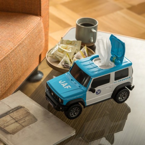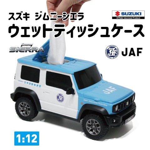 世界初!スズキの人気自動車「ジムニ- シエラ」型のウェットティッシュケ-スにJAFバ-ジョンが登場。