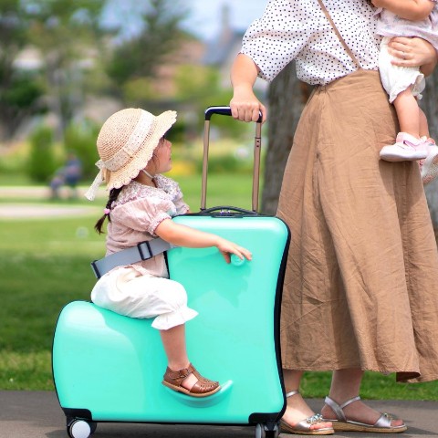 木馬のように乗れるキッズキャリ-ケ-スです。