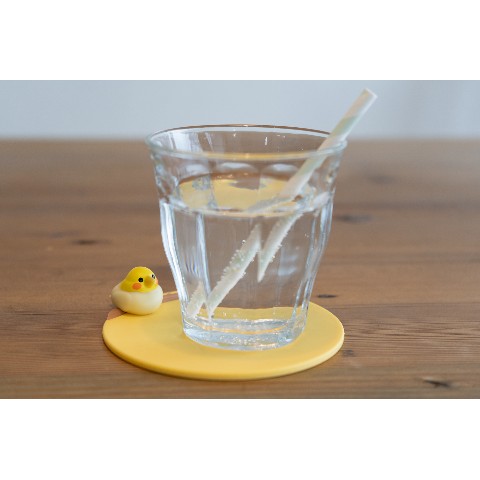 シリコーン製のコースターに鳥のフィギアが付きました。