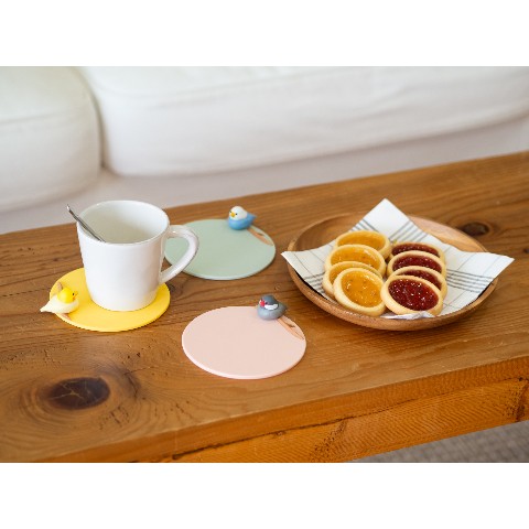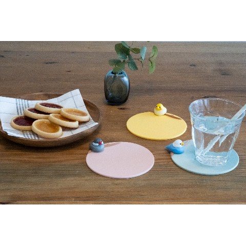 シリコーン製のコースターに鳥のフィギアが付きました。