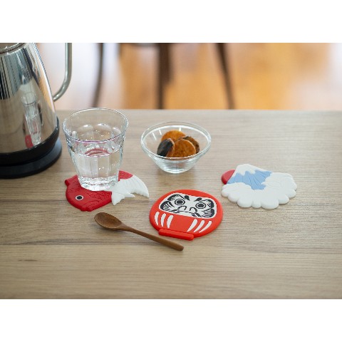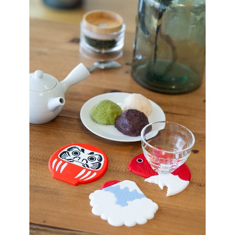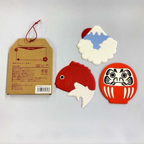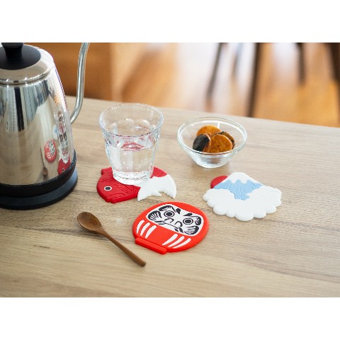 おめでたい和のモチーフがシリコーン製のコースターになりました。