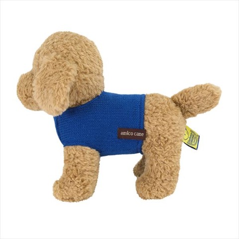 見つめられているような表情デザインは、まるで犬とコミュニケーションをとっているかのよう。ポップなカラーのセーターを着た、おしゃれなわんちゃんのぬいぐるみシリーズです。