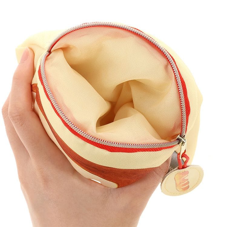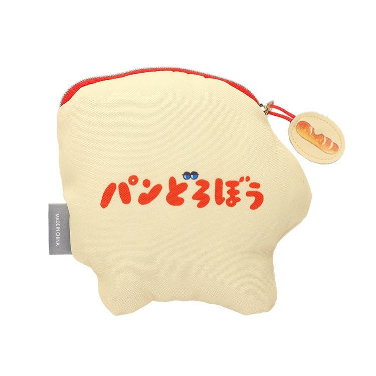 ふかふかな触り心地でつい触りたくなる、パンどろぼうのダイカットポーチ。リップクリームやヘアゴムなど小物を入れたり◎パンのかたちのファスナータブもかわいい◎