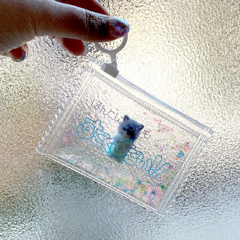 「ほんとにとってもすごくすごい!」とシンプルな言葉で褒めてくれる、スライダー式フラットポーチです。中にグリッターが入っていて、振るとシャカシャカと動きます。