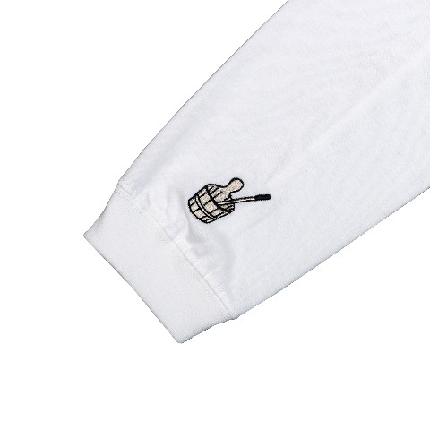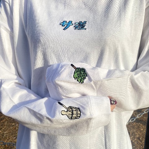胸にサ道と両袖部分には可愛いサウナを表現した刺繍を入れたユニセックスで着れるサ道ロングスリーブTシャツ。