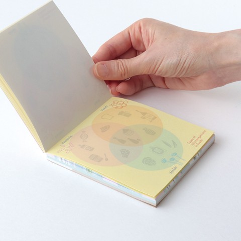 表紙はクリアタイプの硬質塩ビに、盛り上げエンボスプリント。エンボスプリントには一部楽しい仕掛けが入っています。4柄×各25枚入