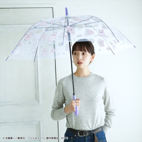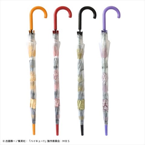 〇「ハイキュ-!!」のアニマルたちがプリントされたジャンプタイプのオリジナルデザインのビニ-ル傘。持ち手も各高校の配色になっていて、雨の日が待ち遠しくなりそう!