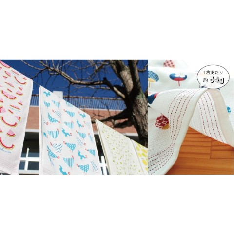 うすい、かるい、ながいてぬぐいのようなタオル、吸水性が高く早く乾きます。