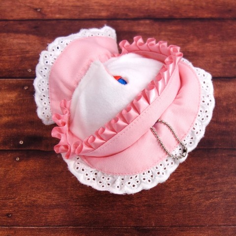 また、Sサイズは頭の上部にボールチェーンなどを通すことが出来る切り込み穴があるので、お洋服を着せたまま持ち歩きも可能♪
