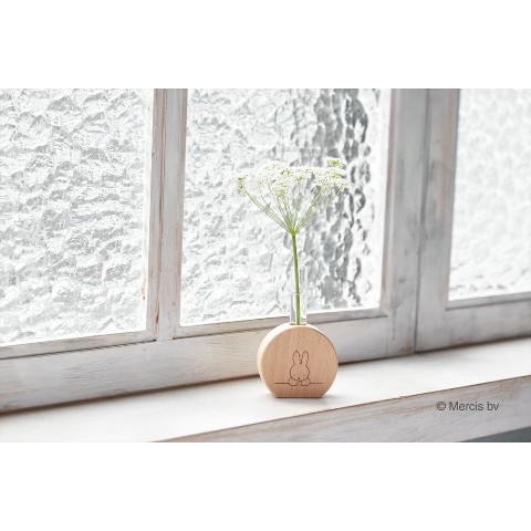 ビーチ材の柔らかな質感が心地よい手のひらサイズの一輪挿しです。アンニュイなミッフィーに癒されます。