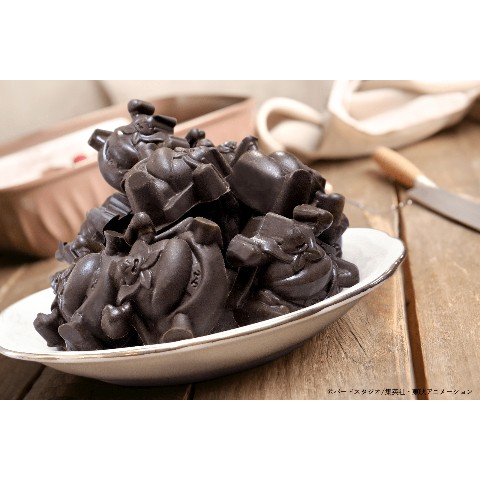 チョコ型は、あのシーンのフォルムを再現したこだわりの造形で、食品衛生法の基準をクリアした素材で製作しているので、安心してお使いいただけます。また、流し入れたチョコレートの気泡を抜く時の振動や、チョコレートを取り出す時の衝撃にも強く、繰り返し使っても十分に耐えられる耐久性があります。