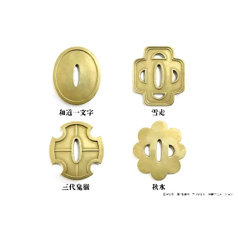 そんなゾロの愛刀「和道一文字」「雪走」「三代鬼徹」「秋水」の鍔を、本物の日本刀の鍔と同じ技法で製作。