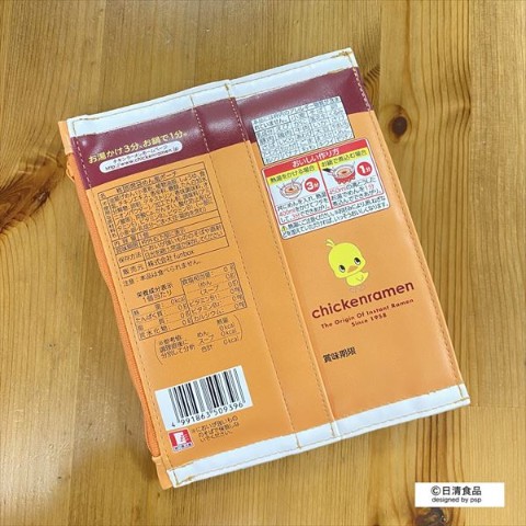 本物のパッケージそっくりな袋型のフラットポーチです。なんと本物の袋面がすっぽり入る大きさとなっています。裏面までこだわったデザインにご注目ください。