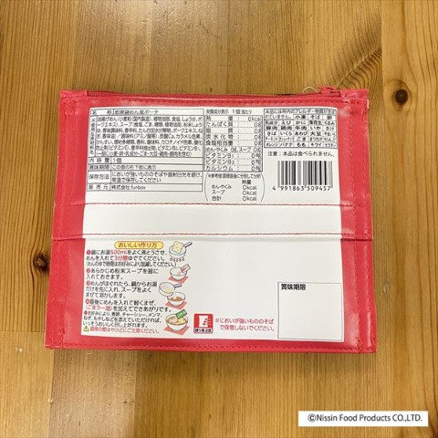 本物のパッケージそっくりな袋型のフラットポーチです。なんと本物の袋面がすっぽり入る大きさとなっています。裏面までこだわったデザインにご注目ください。