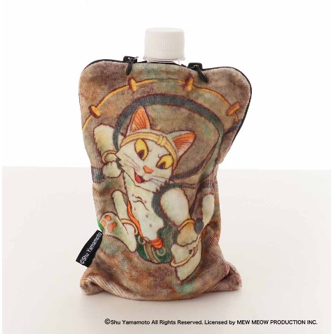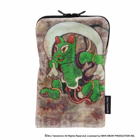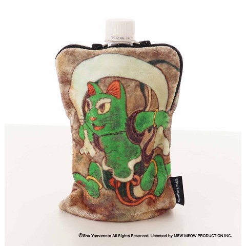 【CAT ART】キャットアート ファスナー付き ペットボトルケース タオルハンカチ 屏風 「風神猫・雷神猫」 猫屋宗達