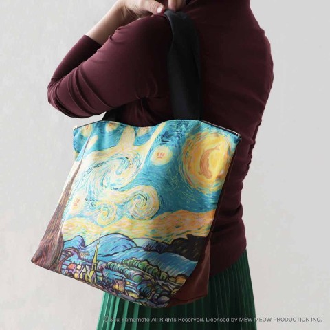 【CAT ART】キャットアート エコバッグ/マイバッグ 猫星月夜/ヴィンセント・ヴァン・ニャッホ (パッケージ入り)