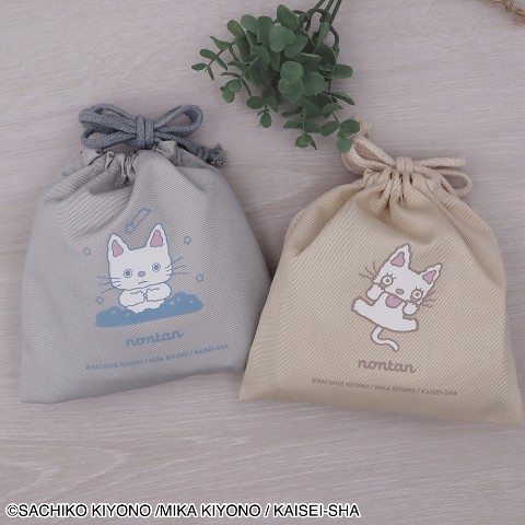 淡い色合いとデザインで「大人ノンタン」がテーマ!使い勝手の良い布製巾着。細々したアイテムをサッとまとめて スッキリ持ち運びできます!