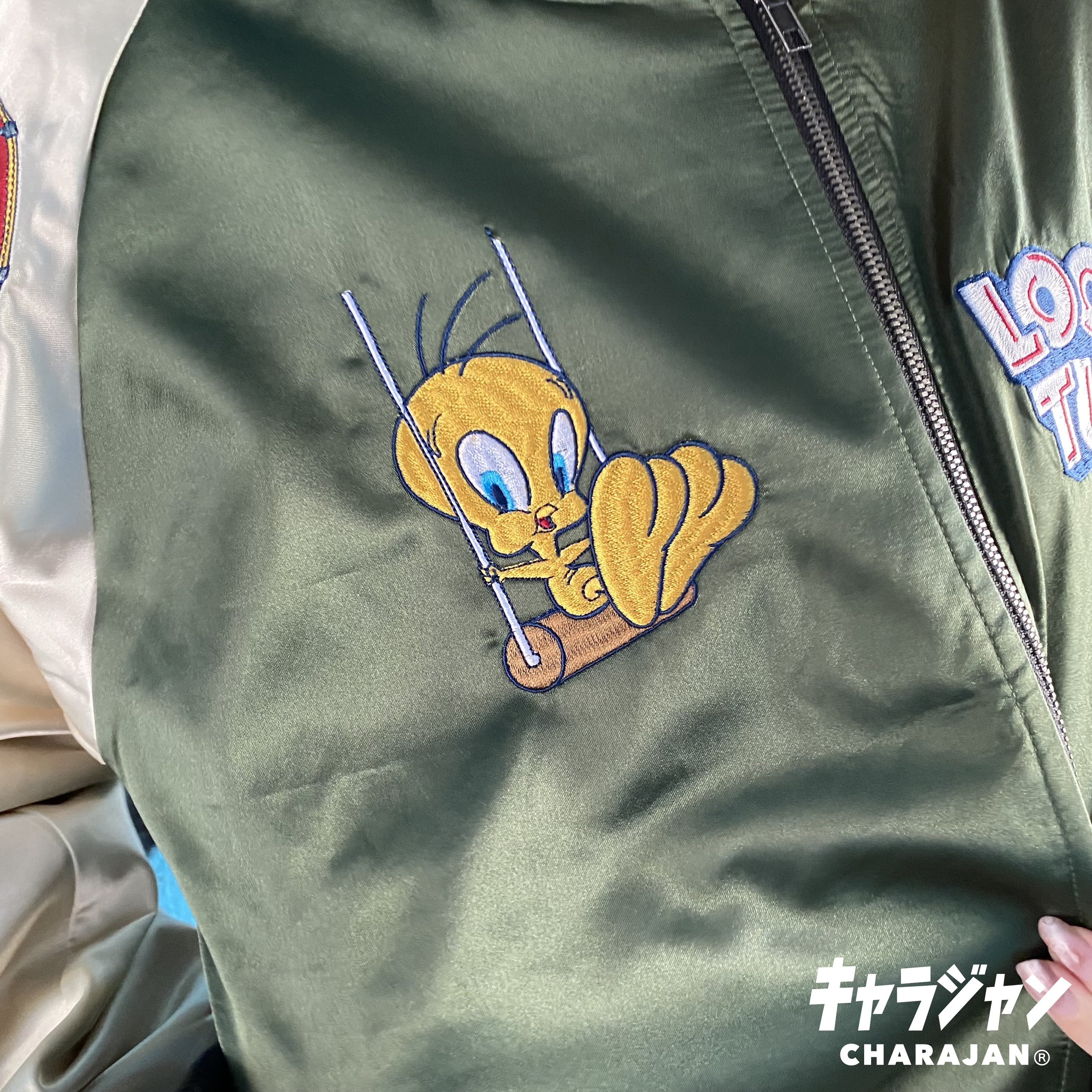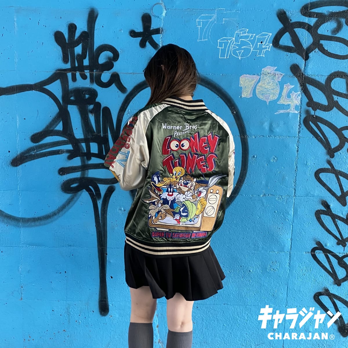 ルーニーチューンズのキャラクターたちがデザインされたスカジャンです。