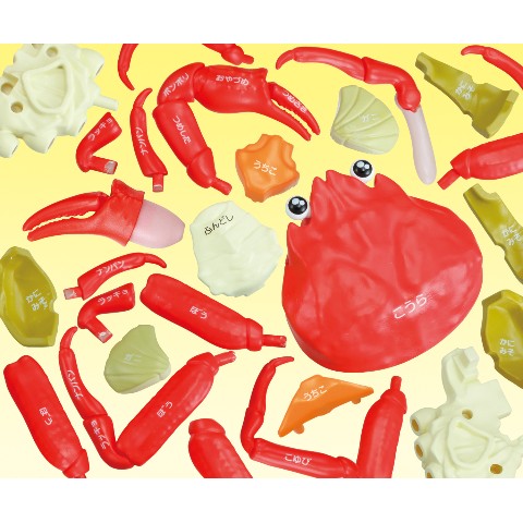 本ズワイガニの部位がわかるパズルです。ばらばらの41パーツを組むとかわいい本ズワイガニが完成します。うちこを組めばメスのカニにすることができます。