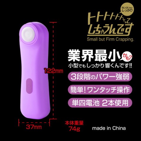 叩く様な刺激の新感覚ローターが登場です。その名も「トトトトトトッってしちゃうんです」。使い方は簡単!単四電池2本を入れ、電源スイッチ長押しでスタート。あとは電源スイッチを短押しすることで、3段階のパワー強弱をお楽しみいただけます。本製品は小型で簡易的なモデルですが、刺激は意外とパワフル。十分なパワーを発揮し、しっかりと楽しめることでしょう。小さく可愛いのに、とっても刺激的な新感覚ローター「トトトトトトッってしちゃうんです」。小型だからと侮らずに、お試しください。