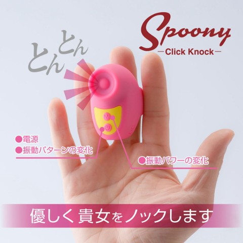 このスプーニークリックノックは優しくク〇をノックする小型ローターです。指にはめて使用するので、持つ必要がなくストレスなく遊ぶことができます。またとても滑らかな素材を使用し、肌心地は抜群。優しい感触の官能体験をご堪能いただけます。操作は簡単。まず電源スイッチを長押しで起動。起動後は電源スイッチを短押しで振動パターンが7種類、Mスイッチを短押しで振動パワーが3段階、変化します。充電は付属のケーブルを使用します。およそ60分の充電で、最大50分の使用が可能です。優しくク〇をノックするスプーニークリックノック。トントンと刺激する官能をお楽しみください。