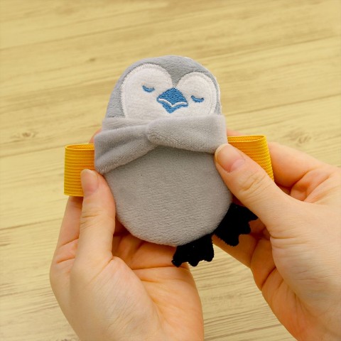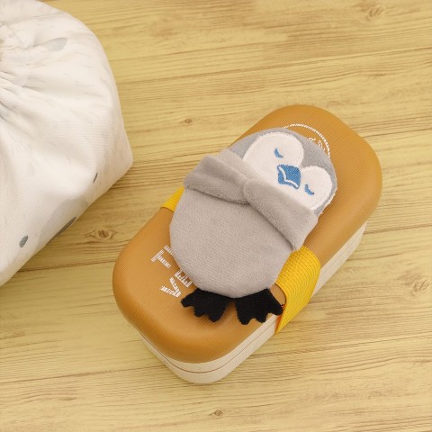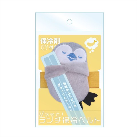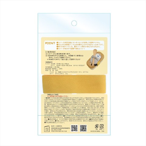 カバー付き保冷剤とランチベルトが合体した便利なアイテム。のんびりお昼寝するアニマルがお箸やふりかけをぎゅっとホールド。