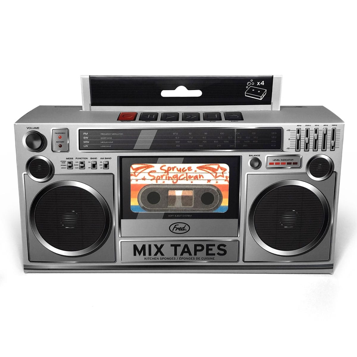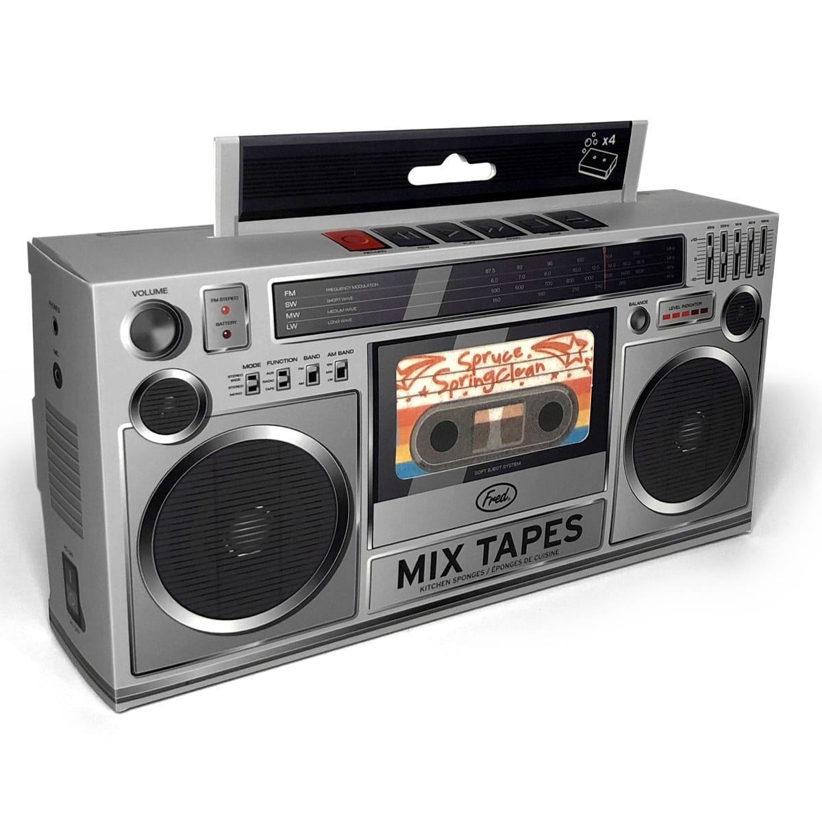 レトロなカセットテープモチーフのキッチンスポンジ。