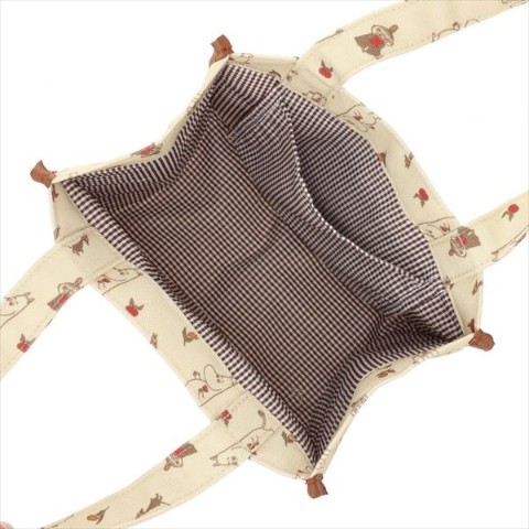 総柄がかわいいランチトート。マチ付きでたっぷり収納できます。内側にはポケットつき。内生地がギンガムチェックで可愛らしいデザイン。