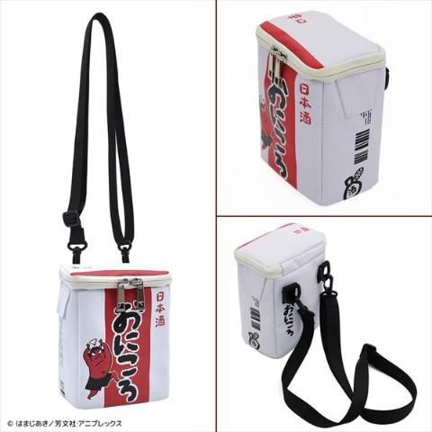 アニメ「ぼっち・ざ・ろっく!」に登場する廣井きくりの愛飲する日本酒「おにころ」のパッケ-ジを完全再現したショルダ-バッグ。内生地はパック酒のパッケ-ジをイメ-ジして銀色に。