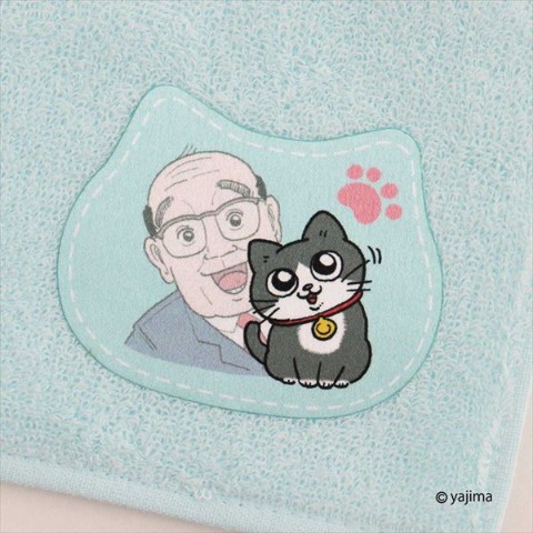 パイルのタオルに猫型のアイロンワッペンが可愛いタオルです。