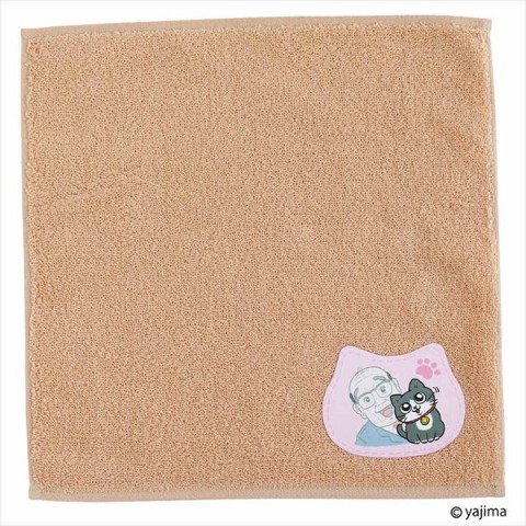 【ねこに転生したおじさん】タオルハンカチ プンちゃん&おじさん ベージュ