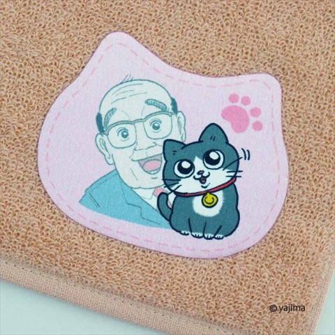 パイルのタオルに猫型のアイロンワッペンが可愛いタオルです。
