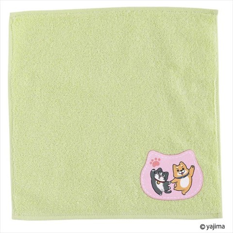 【ねこに転生したおじさん】タオルハンカチ プンちゃん&スケキヨ グリーン