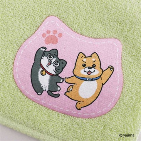 パイルのタオルに猫型のアイロンワッペンが可愛いタオルです。