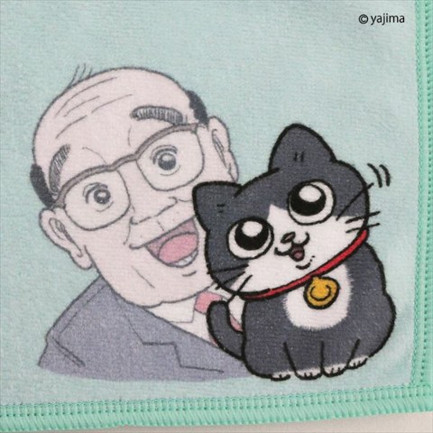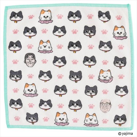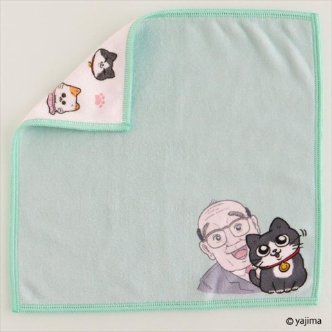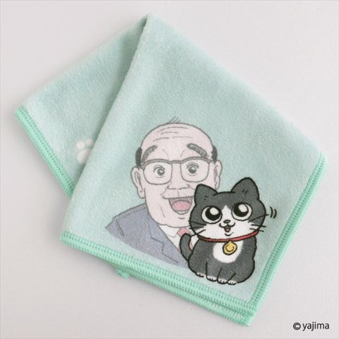 【ねこに転生したおじさん】スマホ拭きハンカチ 首をかしげるプンちゃん グリーン