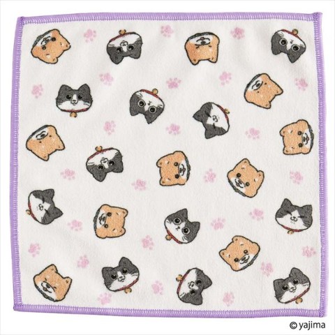 【ねこに転生したおじさん】スマホ拭きハンカチ プンちゃん&スケキヨ パープル