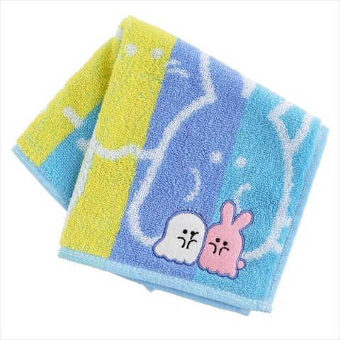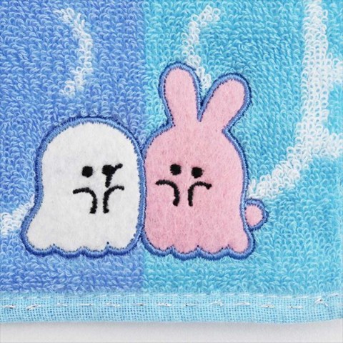 【オバケーヌ】タオルハンカチ オバケーヌ&ウサギーヌ アップリケ ブルー