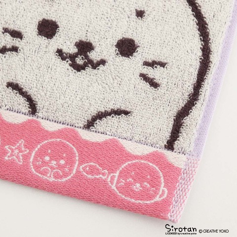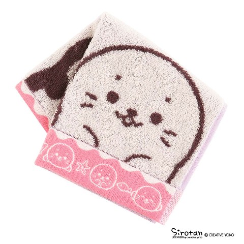 ふわふわの可愛い表情が愛らしいしろたんとらっこいぬ・しぇる・らむねが仲良く大きくデザインされたタオルです。