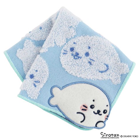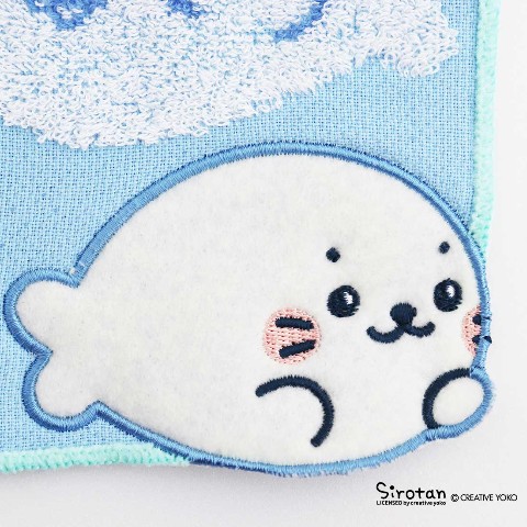 タオルは角丸で優しい配色とアップリケのしろたんで、しろたんの可愛さ倍増のタオルです。