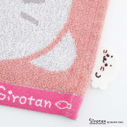 【しろたん】タオルハンカチ しろたんモチーフ ピンク