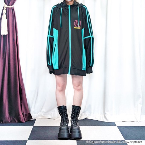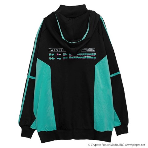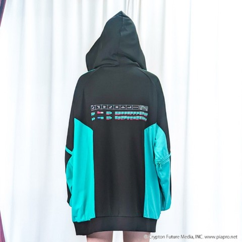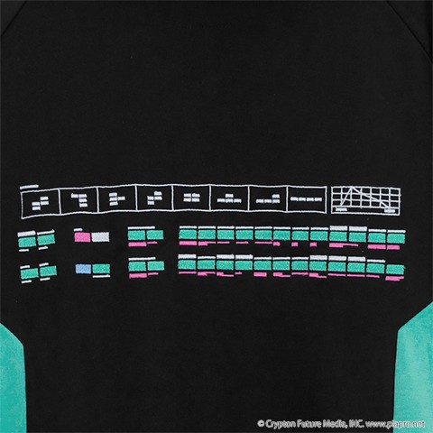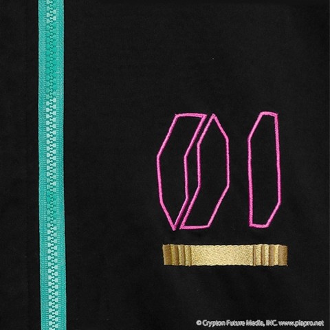 胸元と背中に大きくミクモチーフの刺繍を施した