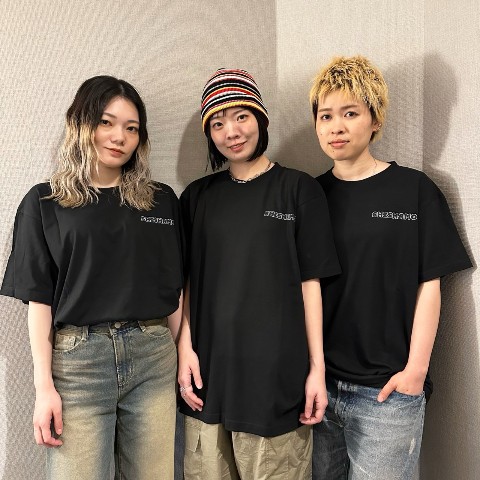 SHISHAMOの楽曲「君の目も鼻も口も顎も眉も寝ても覚めても超素敵!!!」をモチーフに 原田ちあきがSHISHAMOのメンバーを描いたコラボTシャツ!