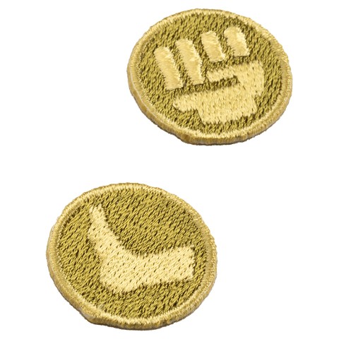 STREET FIGHTER 6 の操作で基本の攻撃となる、キックボタン、パンチ、ドライブインパクト、必殺技ボタンのアイコンをモチーフにした刺繍ステッカー。