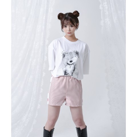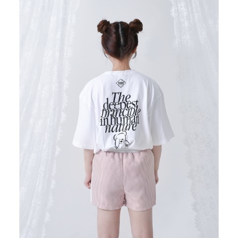 バックにもメッセージとシンプルなクマのグラフィックをプリント。 ブランドらしい一枚。トレンドのビッグシルエットを取り入れ