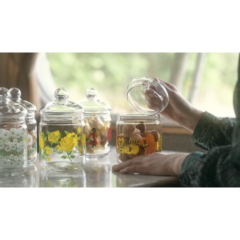 ボンボンとは、一口サイズのチョコレートやキャンディーのこと。昭和の家庭では、ガラスの卓上保存容器は「ボンボン入れ」と呼ばれ親しまれていました。 そのかわいらしい見た目から、当時はお部屋を飾るインテリアとしても人気がありました。お菓子だけでなく、小物などの収納にもお使い頂けます。