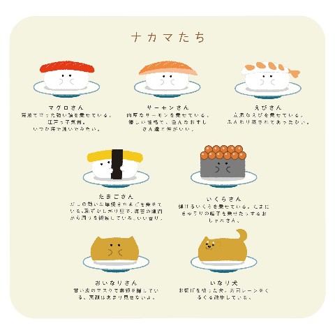 寿司湯呑だけにしかいないサブキャラも、仲間たちがたくさん描かれています。
