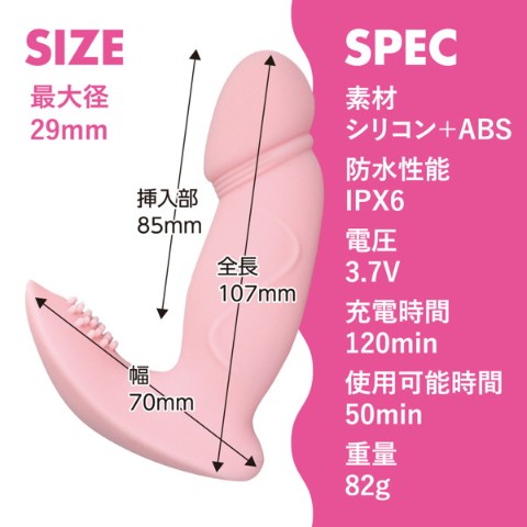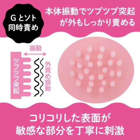 挿れやすさバツグンの細めのバイブ部分はグイグイアクションと振動・ツブツブが刺激的な外責め部分は振動で局部を快感に導きます。