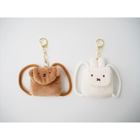 ミッフィーとボリスのお顔が付いたミニサイズのリュック型チャームです。ワイヤレスイヤホンや飴、小銭など小さなものが入ります。チェーン付きの為、バッグに取り付け可能です。全2柄 SIZE:約W80×H80mm 素材:本体:ポリエステル