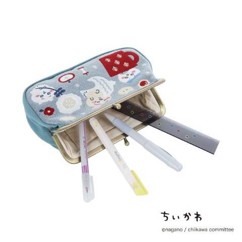【ちいかわ】畳刺繍がま口ポーチ ちいかわ ブルー