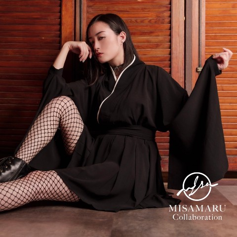着物ワンピースMISAMARUコラボ(黒-black)L